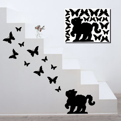 Котёнок и бабочки (монохром) 30х40см