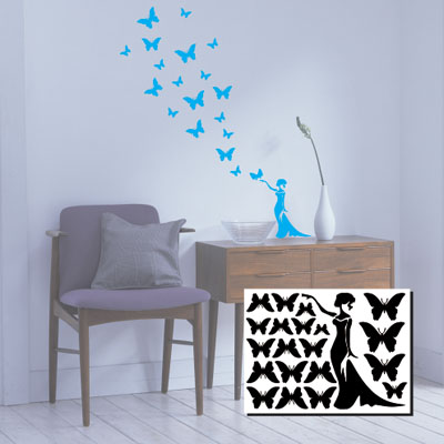 Девушка и бабочки (монохром) 30х40см